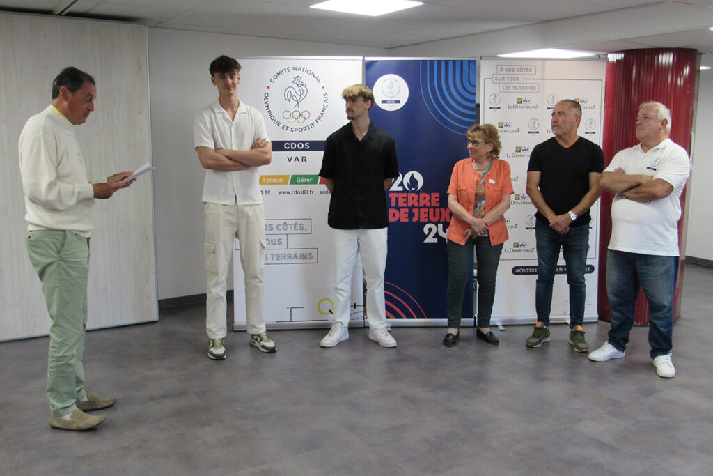 Devant des membres de leurs familles et du VCHPLL, le président du comité départemental de volley-ball Gérald Henry a dressé le parcours (déjà bien rempli) des deux champions avec quelques similitudes comme leurs nombreuses participations au tournoi international Poussins de Hyères ou aux stages avec la sélection du comité du Var et l’intégration au Pôle Espoirs du Centre National de volley-ball. « Je suis très fier d’eux, de leur parcours, et je remercie le CDOS pour ce prix. Ça récompense aussi le travail de leur club respectif sur les jeunes. » a-t-il conclu.
