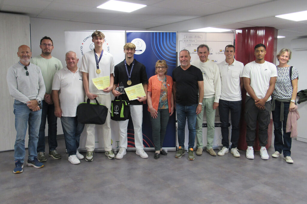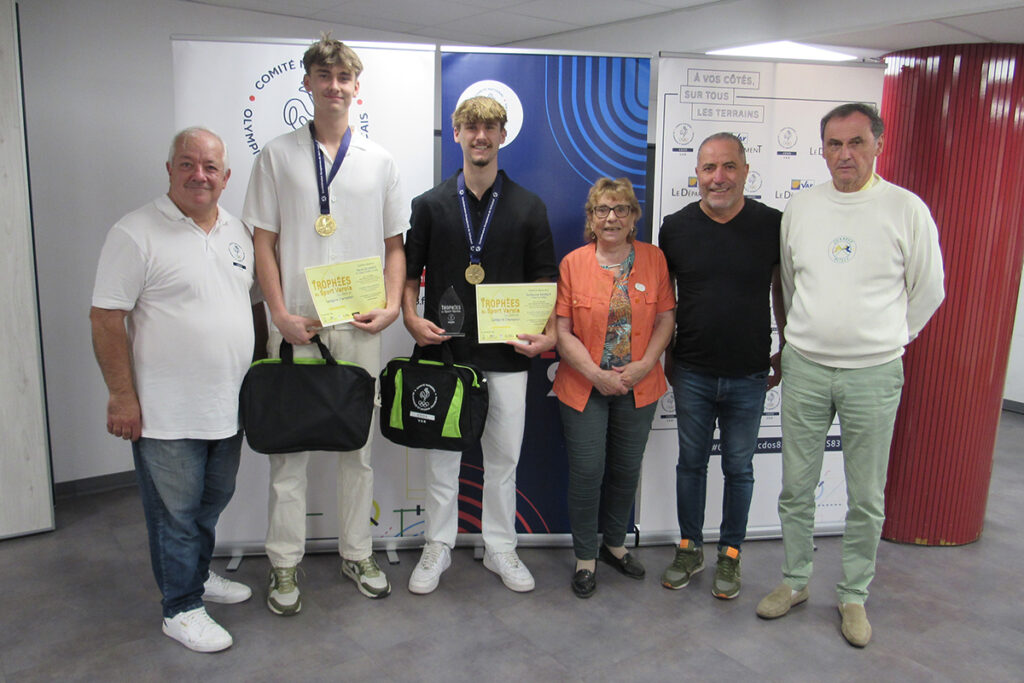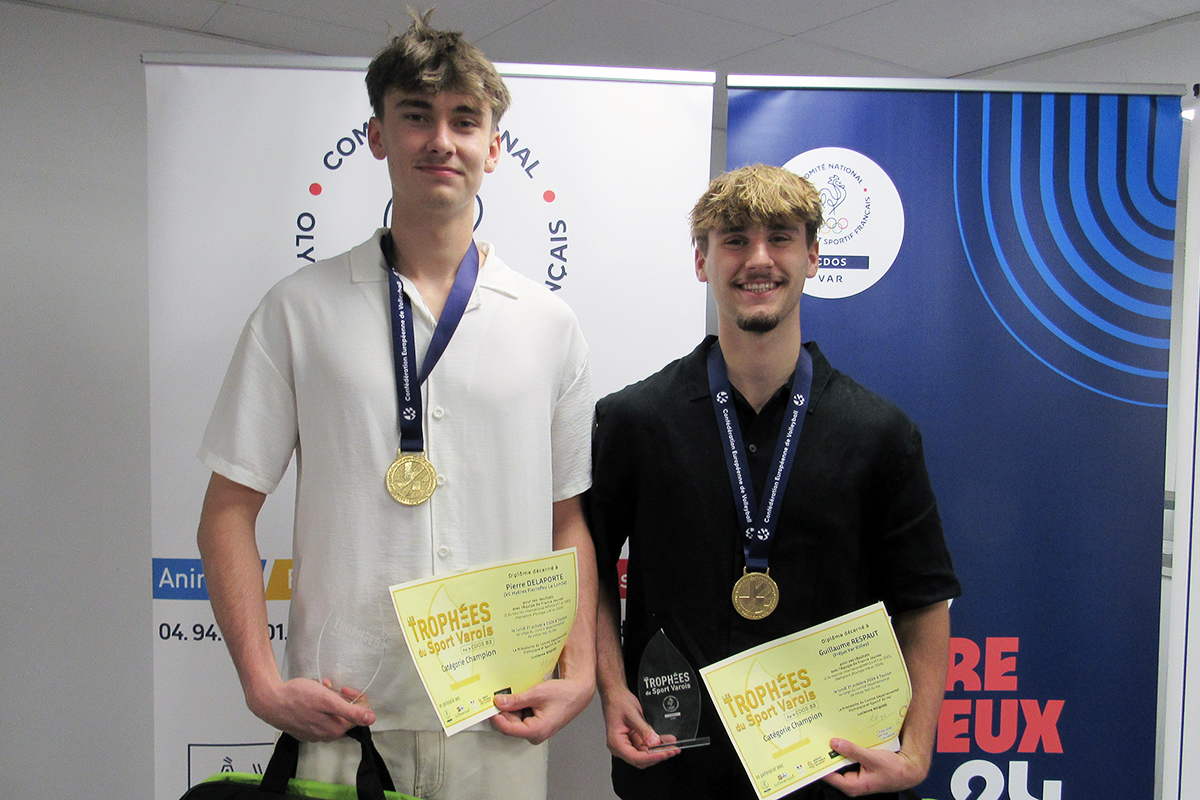 Si le CDOS 83 a souhaité les valoriser, c’est pour leurs résultats avec l’équipe de France U17 en 2023 lors de la compétition internationale WEVZA où les Bleuets ont terminé à la seconde place et où Pierre (surclassé) et Guillaume ont tous les deux finis dans l’équipe de rêve du tournoi. Ils ont fait encore mieux cet été avec un titre de champion d’Europe U18 à la clé (obtenu avec un autre Varois, Thomas Schmitz-Straumann, de Fréjus) et ont d’ailleurs apporté leur médaille d’or pour cette cérémonie.