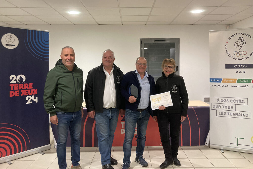 En quelques jours, les « Trophées du Sport Varois » ont mis à l’honneur deux personnes dans la catégorie « Citoyenneté », Gilbert Égéa et Frédéric Portier, pour leurs actions menées en faveur des personnes en situation de handicap. Un prix, un diplôme ainsi qu’un chèque de 100€ leur ont été remis par la présidente du CDOS 83 Lucienne Roques, accompagnée d’Erick Plavis, Chokri Oueslati et Brigitte Crevet, membres de la commission « valorisation » du CDOS.