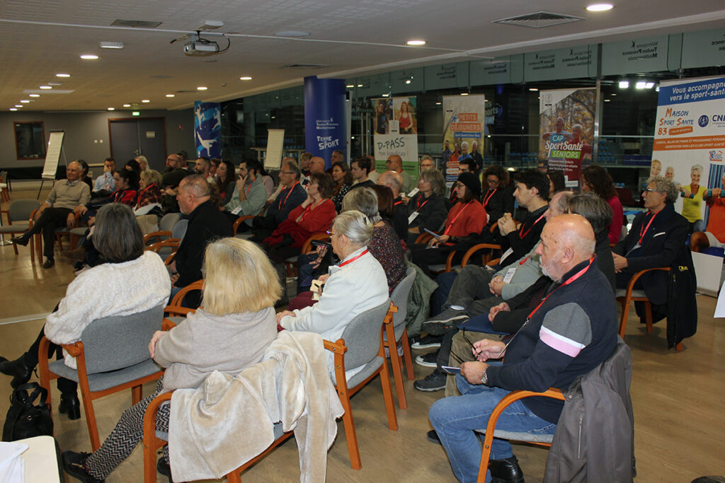 Les structures ont ensuite pris part aux 5 ateliers menés par les enseignants APA de la Maison Sport Santé 83 et à Véronique Lopez, du CROS de la Région Sud, pour tenter de répondre collectivement aux questions suivantes :
