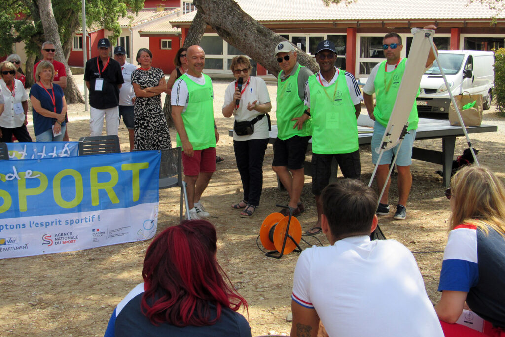 Alors que la restitution des travaux sera affinée et envoyée aux bénévoles durant l’été, la journée s’est terminée par une présentation du dispositif « Attitude Sport », proposée par Lucienne Roques. L’ancienne présidente du CDOS et désormais vice-présidente en charge des politiques publiques a organisé une mise en situation pratique avec les personnes présentes interprétant différents types de public (enfants, parents sport, parents spectateurs) et ainsi mieux expliquer ce dispositif qui met en avant le fair-play et le respect de l’autre.