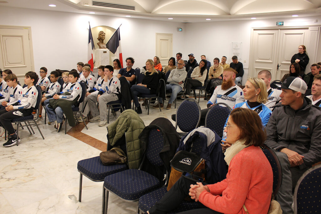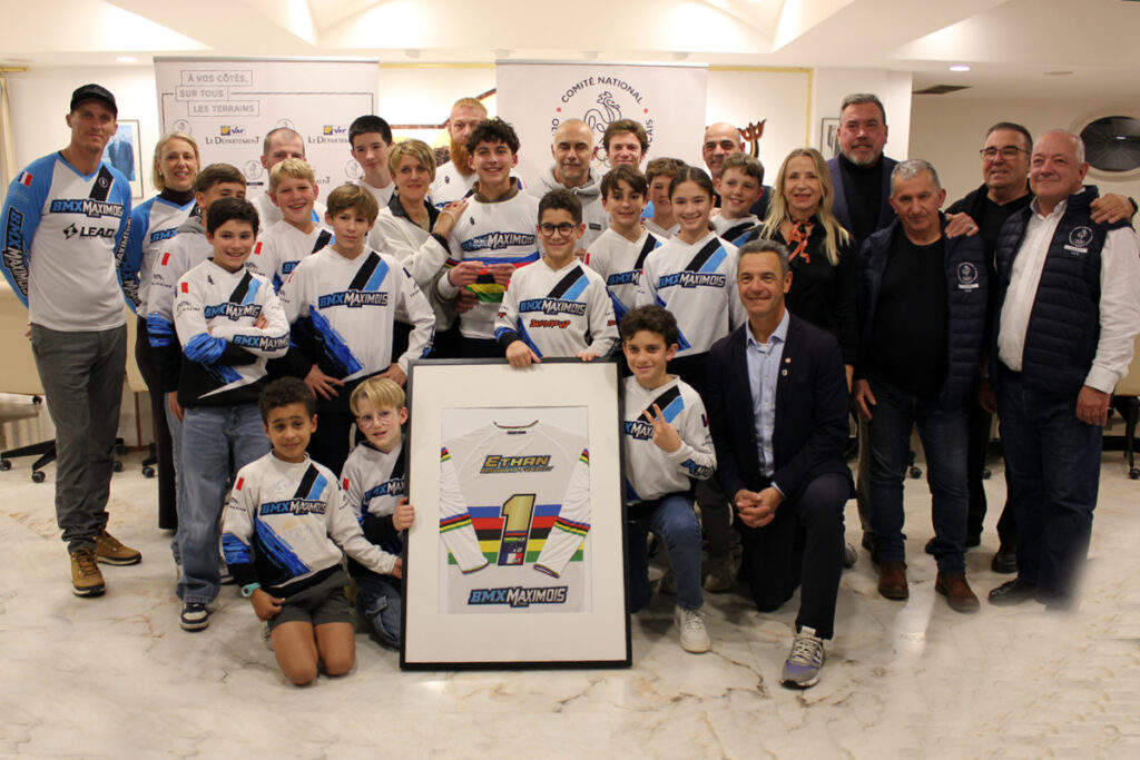 « Même s’il ne vit pas à Sainte-Maxime, les résultats d’Ethan au sein d’un club de la ville font qu’il a un taux de maximois de 90% » a plaisanté Vincent Morisse au moment des félicitations adressés au champion, après avoir remercié le CDOS 83 pour l’organisation de la cérémonie. « Ça me fait plaisir de voir Audrey (Pichol, ancienne championne du monde), qui a ouvert la voie, Franck (Chapon) et son équipe de bénévoles qui montent chaque année le niveau du BMX Maximois, qui s’investissent pour les jeunes et qui amènent à des résultats comme ceux d’Ethan. On n’avait pas encore eu l’occasion de te féliciter en mairie, c’est désormais chose faite ce soir ».