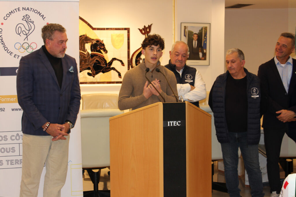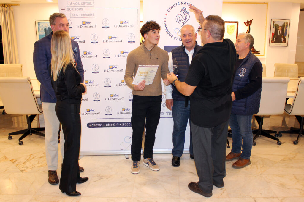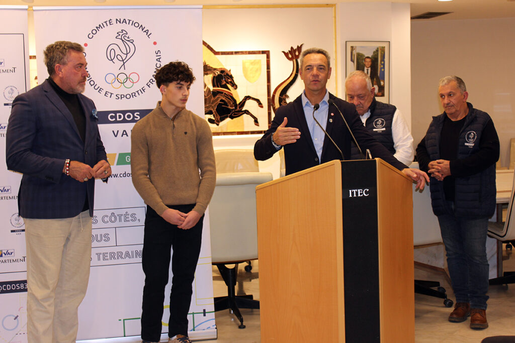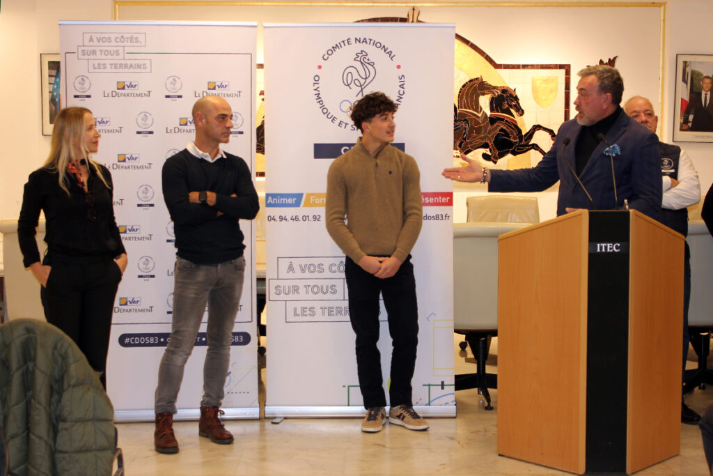 Vainqueur du Challenge mondial et du Challenge européen de BMX chez les U13 au cours de l’année, il a tapé dans l’oeil de la commission « valorisation » du CDOS 83, qui a décidé de lui remettre un « Trophée du Sport Varois » dans la catégorie « Champion », ce qui a valu l’organisation de cette cérémonie. Venus avec Patrick Rosadini, référent de territoire du CDOS dans le Golfe de Saint-Tropez, Erick Plavis et Marcel Albert, membres de cette commission, ont ouvert la soirée en expliquant notamment le fonctionnement du CDOS et comment Ethan avait été choisi, avant la prise de parole des personnalités institutionnelles.