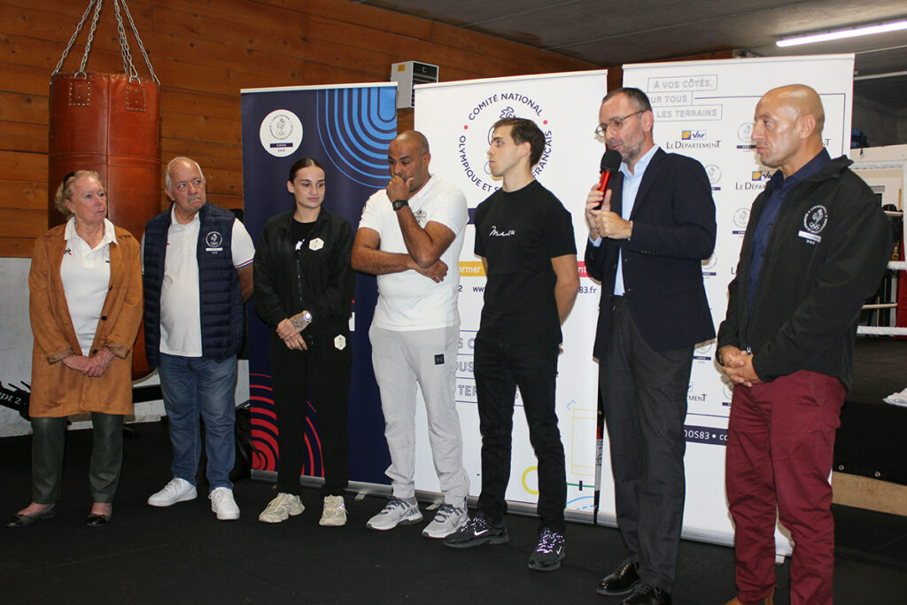 Tout comme la présidente du comité départemental de boxe Marie-Josée Robin, les conseillers départementaux Valérie Mondone et Michel Bonnus étaient également venus lui témoigner leur respect. « Si on est tous là, avec le sourire, c’est que tu fais l’unanimité. Tu fais les choses avec beaucoup d’humilité, tu fais partie des gens qui donnent envie de se battre, à moi le premier et tu es devenu incontournable dans la ville. Merci et bravo » déclarait celui qui est également sénateur, avant de céder la parole au président de la section boxe de l’ASCM Toulon, Cyprien Fonvielle : « Quand on est président de club, on est très heureux d’avoir quelqu’un comme lui. La partie prévention, cette volonté d’aller chercher les publics pour utiliser la boxe comme outil pédagogique, l’ouverture et le développement de cette salle à La Beaucaire, c’est lui. Il vient de donner de son temps pour l’association, et même plus que ça. Tous ceux passés par l’ASCM mesurent à quel point il est un acteur essentiel car il a cette capacité à lire dans les gens au-delà de ce qu’ils perçoivent d’eux-mêmes ».