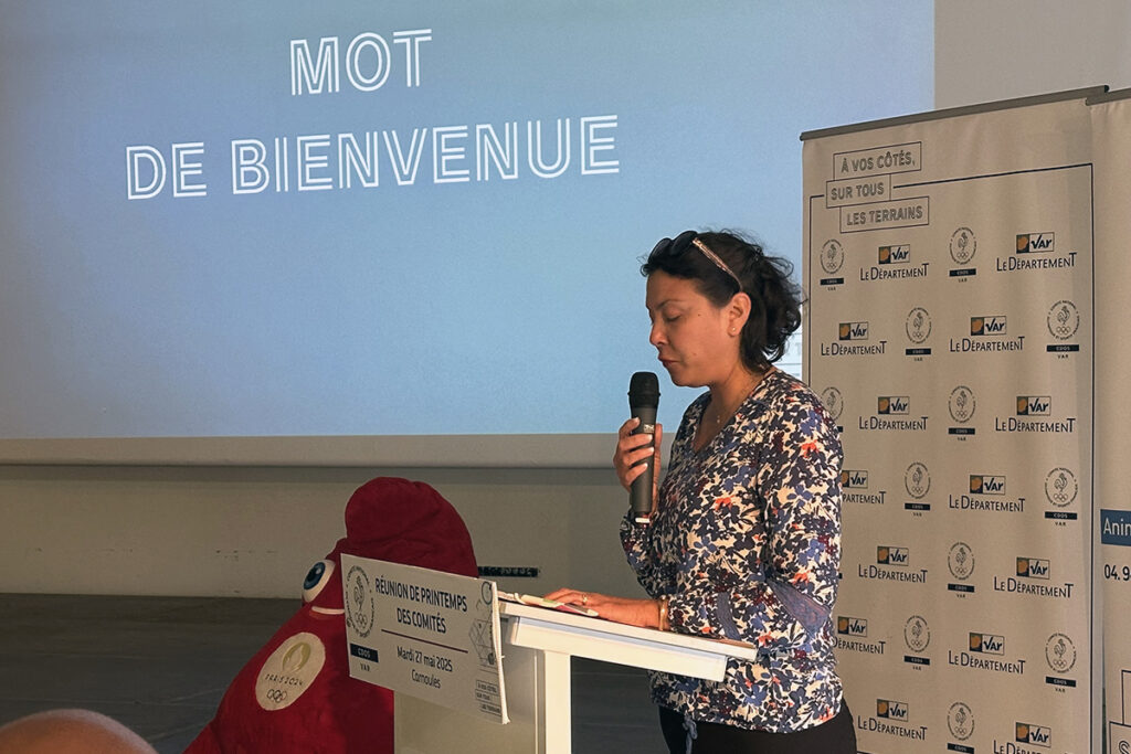 Comme le veut la coutume, la soirée avait démarré par un mot de bienvenue de la ville d’accueil, Carnoules. Représentant le Maire Christophe Cortès (retenu par d’autres obligations), la conseillère municipale Carine Vergne a d’abord évoqué l’organisation début mai d’une journée dédiée au handicap dans le sport, avant de mettre en avant le travail de la commune sur ce thème : « Dans une société où cela reste parfois difficile, nous affirmons notre volonté de renforcer le lien social à travers le sport. Carnoules a été également labélisée « Terre de Jeux 2024 » et nos écoles « Génération 2024 » et nous agissons aussi concrètement sur le terrain, en particulier à travers le programme « Savoir nager ». Ces reconnaissances valorisent notre travail pour un sport accessible à tous et pour l’égalité des chances ».