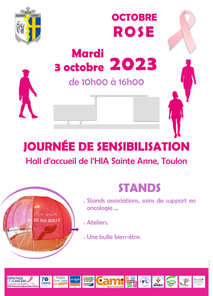 Dans le cadre d’Octobre Rose, mois consacré à la sensibilisation au cancer du sein, la Maison Sport Santé 83 vous invite mardi 3 octobre à partir de 10h à venir découvrir nos nombreuses actions sport-santé à l’Hôpital d’Instruction des Armées (HIA) de Sainte-Anne à Toulon.