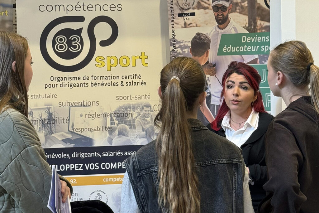 Le public présent a pu tourner sur les différents stands expliquant les nombreux métiers gravitant autour du sport (éducateur sportif, directeur sportif, professeur d’EPS, secrétaire ou chargé de communication d’association sportive, enseignant APA …) tenus par des structures partenaires : le CROS Région Sud, la DRAJES PACA, le SDJES 83, le département du Var, la mairie de La Seyne-sur-Mer, l’AFDAS, France Travail, la Maison de l’Emploi, la mission locale, Icadémie, CitésLab, le CMA et le bureau d’information jeunesse de La Seyne ainsi que les clubs locaux, l’US Seynoise, La Seyne Basket et le Sporting Club de Toulon, en plus des GE et GEIQ Sport PACA, du CDOS 83 et sa Maison Sport Santé. Merci à toutes ces structures.