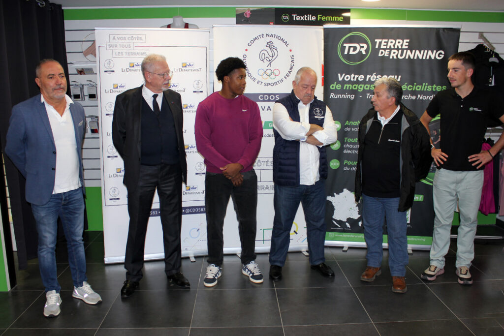 Vainqueur du titre national du triple saut chez les U20 en février dernier, Weaven Metainville a reçu un « Trophée du Sport Varois » dans la catégorie « Champion » ce jeudi 6 novembre 2025, lors d’une cérémonie organisée au magasin « Terre de Running » de La Garde (partenaire du dispositif), en présence notamment de membres de la commission « valorisation » du CDOS 83, de ses deux entraîneurs, et du président du conseil départemental du Var, Jean-Louis Masson.