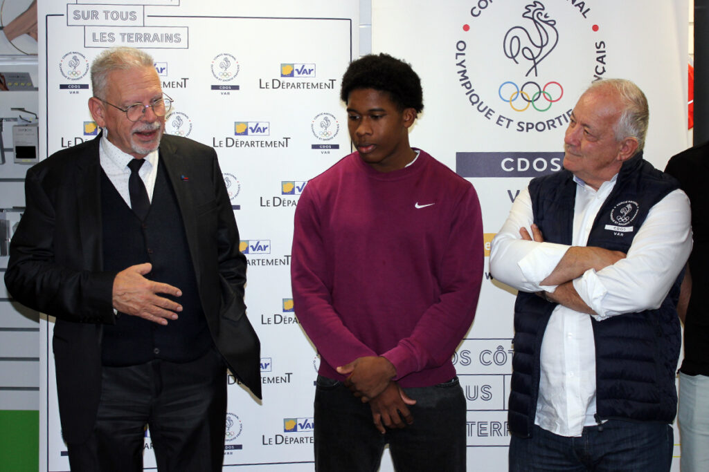 Venu en voisin, l’ancien maire de La Garde a d’abord rappelé le lien qui unit le département au CDOS 83 : « Nous sommes partenaires depuis longtemps pour défendre le sport et ses couleurs. Ensemble, nous avons récemment partagé une belle aventure, avec le passage de la Flamme Olympique en mai 2024, où on a été à la hauteur. Et c’est la première raison de ma présence ce soir ». Jean-Louis Masson a ensuite félicité le jeune (18 ans) champion, licencié au Toulon Etudiant Club. « L’autre raison de ma venue, c’est pour rencontrer Weaven, qui est un sportif déjà important de notre département. On critique souvent les jeunes, mais on a aussi une belle jeunesse dans le Var, une jeunesse qui fait du sport, qui s’engage, qui a des résultats comme Weaven. Le département du Var est fier d’avoir des champions comme lui » a-t-il continué, en précisant que tous ces sportifs sont attendus le 5 décembre 2025 à la soirée des champions organisée par le département.