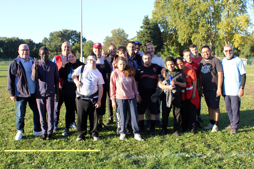 Les actions en question, c’est le président du club Nicolas Stoeckel qui en parle le mieux : « On a d’abord créé une section rugby santé il y a 4 ans pour des gens qui voulaient pratiquer dans un cadre sécurisé, sous l’impulsion d’Alain Occelli en particulier. Et puis comme ça roulait bien et qu’il devait s’ennuyer un peu (rires), Alain nous a dit il y a un an : « tiens, si on montait une section sport adapté ? ». Après un gros travail préparatoire avec Bernard Tassy sur le cadrage, le fonctionnement, la recherche de financements, la section rugby adapté a ouvert ses portes officiellement le 1er septembre, avec deux types de pratiquants : ceux licenciés à la fédération française de rugby, qui sont une équipe à part entière qu’on a appelé « Les Z’épatants » et qui va bientôt porter nos couleurs ; et ceux qui sont dans des établissement spécialisés qui se déplacent en journée au stade pour découvrir le rugby avec leurs éducateurs ». Des actions de sensibilisation auprès des autres licenciés du club sont également réalisées ponctuellement.